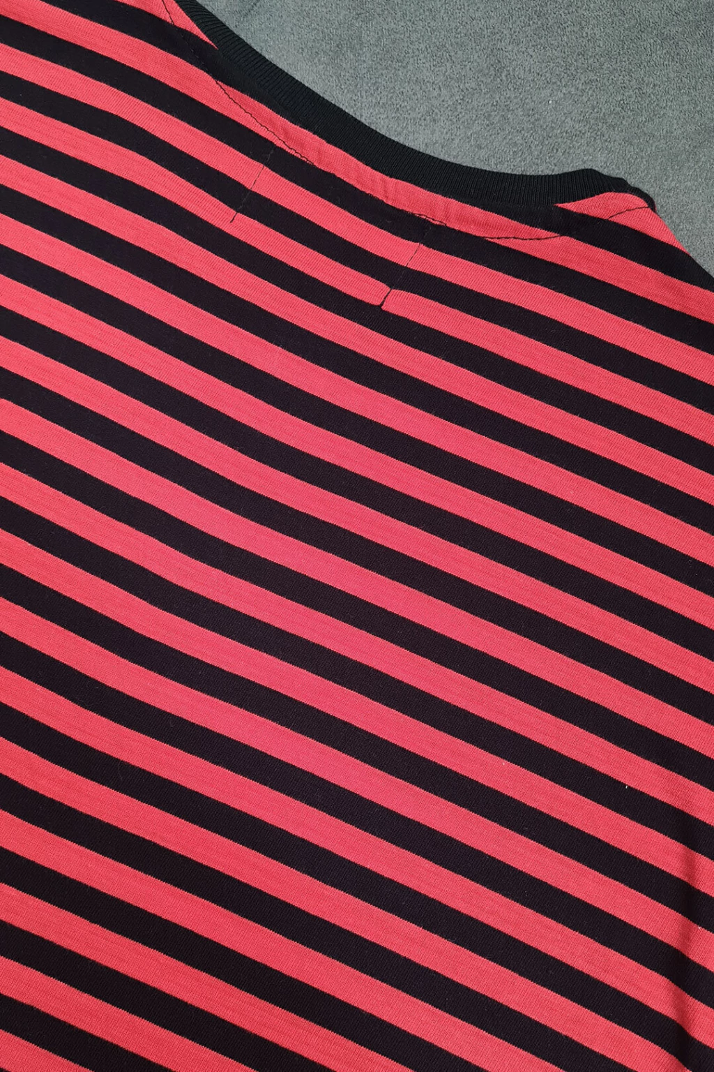 Remera de algodon rayada. Cuello standard, en ribb fino, terminacion con tira de limpieza. Calce recto.